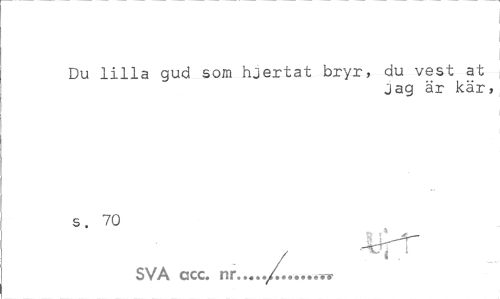 //// Du lilla gud som hjertat bryr, du vest at //// jag är kär, //// s. 70 //// SVA ccc. nr.../,,... ////