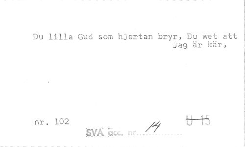 //// Du lilla Gud som hjertan bryr, Du wet att //// jag är kär, //// nr. 102 // tj TD //// jSyA iacc. > . ' ////