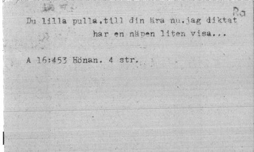 //// i iA. v; V A „, //// .. a //// Du lilla pulla.ttll din ära nu.jag diktat har en nan*n liten visa... //// 1 A 16:453 Könan. 4 str. //// - //// - ¦ ¦ //// i" ' " • . .¦¦:..¦¦.¦¦ ' ////