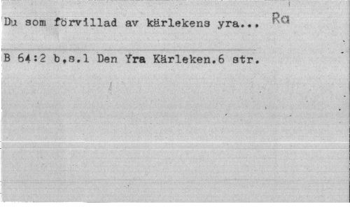 //// Du som förvillad av kärlekens yra... rv,i B 64:2 bfs,l Den Yra Kärleken.6 str. ////