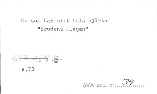//// Du som har mitt hela hjärta "Brudens klagan" //// ( ¦ * A :..¦•< , is ¦ ct s. 73 //// SVA cxc. nr... ////
