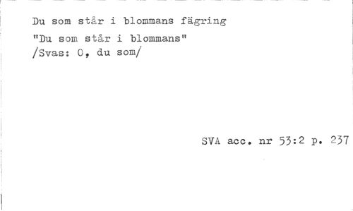 //// Du som står i blommans fägring //// "Du som står i "blommans" /Svas: 0, du som/ //// SVA acc. nr 53:2 p. 237 ////