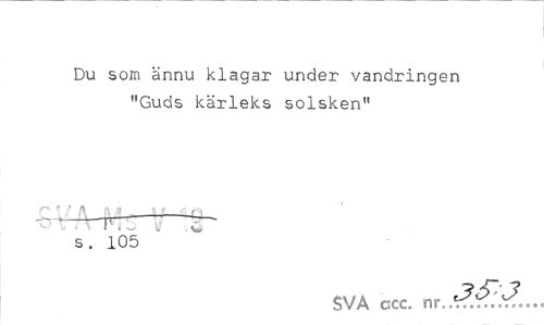//// Du som ännu klagar under vandringen "Guds kärleks solsken" //// ^IjLi^uiV 1' "Hi \ F7L u & //// s. 105 //// SVA ccc. nr.../,, ////