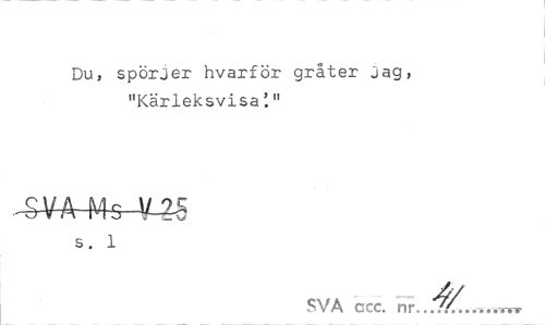 //// Du, spörjer hvarför gråter Jag, "Kärleksvisa" //// s. 1 //// SVÅ ccc. nr. //// iTrr ////
