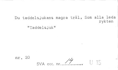 //// Du taddelsjukans magra träl, Som alla leda //// rykten //// "Taddelsjuk" //// nr. 20 , //// /y .{s i r SVA ccc. nr... ? I v) ////