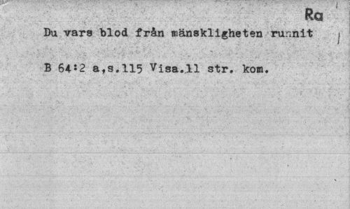 //// Ra //// Du vars blod från mänskligheten runnit j B 64*2 a,s.115 Visa.ll str. kom. ////