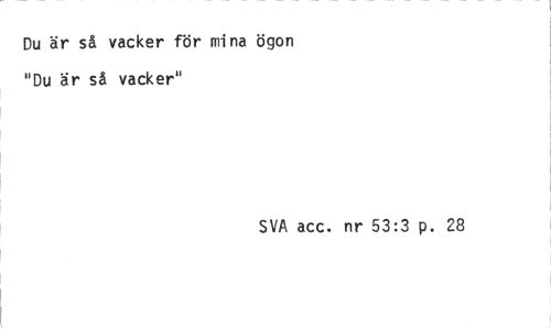 //// Du är så vacker för mina ögon "Du ar så vacker" //// SVA acc. nr 53:3 p. 28 ////