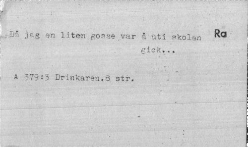 //// • ^ ' - ' ' ' ¦ - _ —... //// Jj* jag en liten gosse var å uti skolan //// gick... //// A 579:3 Drinkaren.6 str. ////
