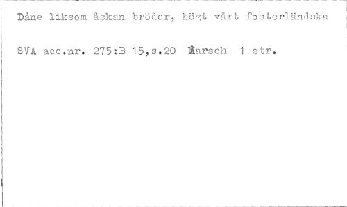 //// Dåne liksom åskan broder, högt vårt fosterländska SVA acc.nr. 2?75:B 15,s.20 tarseh 1 str. ////