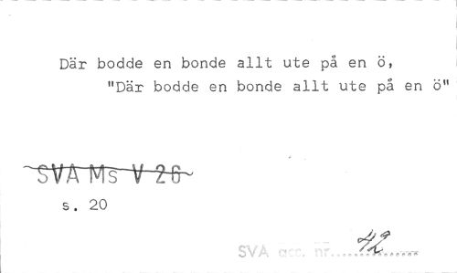//// Där bodde en bonde allt ute på en ö, //// "Där bodde en bonde allt ute på en ö" //// s. 20 //// S V . éirtrw ////