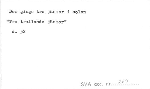 //// Der gingo tre jäntor i solen "Tre trallande jäntor" s. 32 //// ^ £c; //// SVA ccc. nr...,. ////