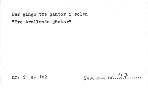 //// Där gingo tre jäntor i solen "Tre trallande jäntor" //// nr. 91 s. 162 5yA GCC. nr. m... ////