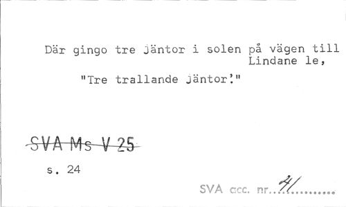 //// Där gingo tre jäntor i solen på vägen till //// Lindane le, //// "Tre trallande jäntor'." //// s. 24 //// SVA ccc. ... ////