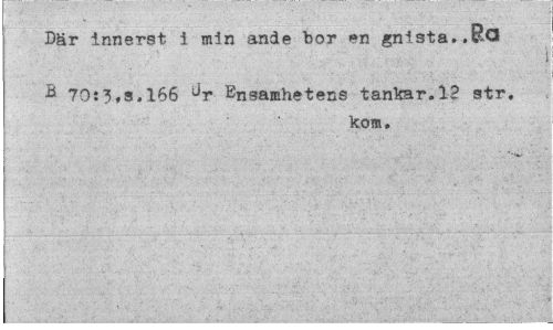 //// Där innerst i min ande bor en gnista..Bö //// .1 //// B 70:3fS.166 ur Ensamhetens tankar.12 str. //// kom. ////