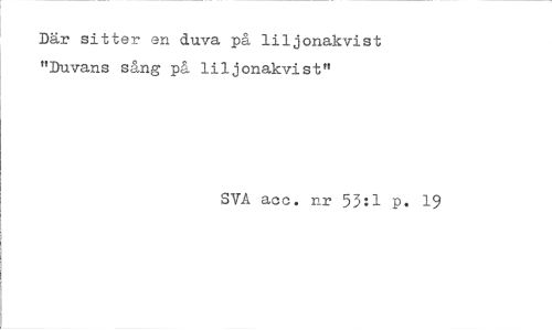 //// Där sitter en duva på li1jonakvist "Duvans sång på liljonakvist" //// SVA acc. nr 53:1 p. 19 ////