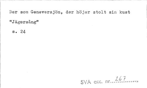 //// Der som Geneversjön, der höjer stolt sin kust "Jägersång" s. 24 //// L(? / //// SVA ccc. nr...** ////