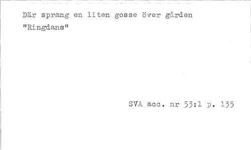 //// Där sprang en liten gosse över gården "Ringdans" //// SVA acc. nr 53:1 p. 135 ////