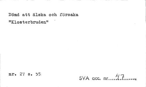 //// Dömd att älska och försaka "Klosterbruden" //// nr. 27 s. t>5 -7 //// SVA ccc. nr...U./... ////