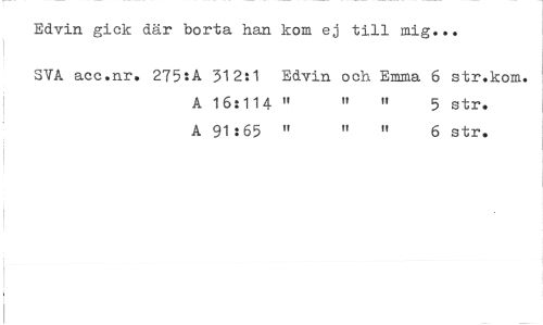 //// Edvin gick där borta han kom ej till mig... //// SVA acc.nr. 275:A 312:1 Edvin och Emma 6 str.kom. //// A 16:114 " " " 5 str. A 91:65 " " 11 6 str. ////