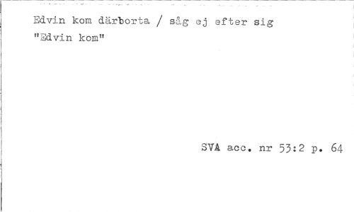 //// Edvin kom därborta / säg ej efter sig "Edvin kom" //// SVA aoc. nr 53:2 p. 64 ////
