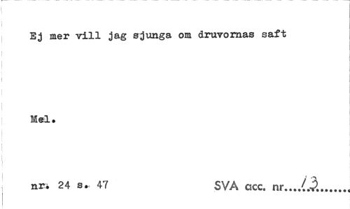 //// Ej mer vill jag sjunga om druvornas saft Mel. //// nri 24 s. 47 SVA cscc. nr.../.3... ////