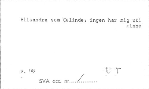 //// Elisandra som Celinde, ingen har mig uti //// minne //// s. 58 fj V SVA ccc. nx.../.,... ////