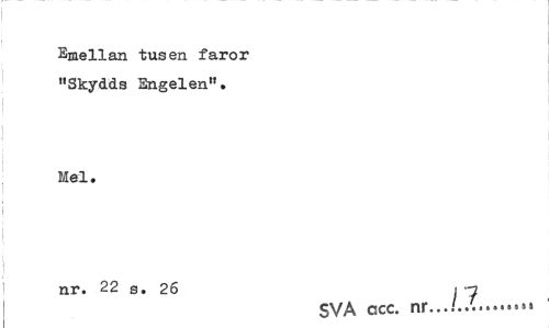 //// Emellan, tusen faror "Skydds Sngelen". //// Mel. //// nr. 22 s. 26 //// SVA ccc. nr.../... ////