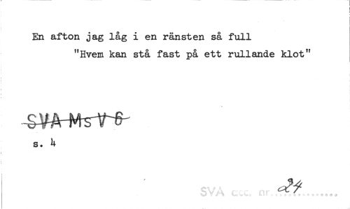 //// En afton jag låg i en ränsten så full //// "Hvem kan stå fast på ett rullande klot" //// -gWhrltfr //// s. H ////