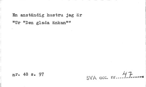 //// En anständig hustru jag är "Ur "Den glada änkan"" //// nr. 48 s. 97 H 7" //// SVA gcc. nr... ////