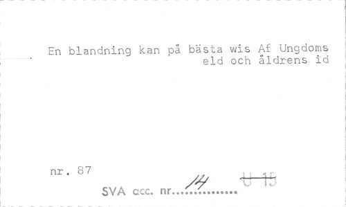 //// En blandning kan på bästa wis Af Ungdoms //// eld och åldrens id //// nr. 87 //// SVA ccc. nr... ////
