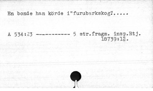 //// En bonde han körde i"furubarkskog?... //// A 534:23 --- 5 str.fragm. insp.Rtj. //// 18739:12. //// t ////