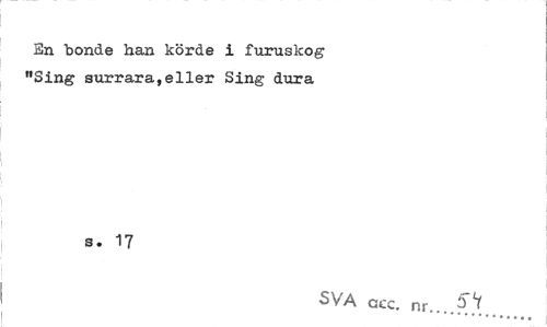 //// En bonde han körde i furuskog "Sing surrara,eller Sing dura //// s. 17 //// SVA acc. nr...?V ////