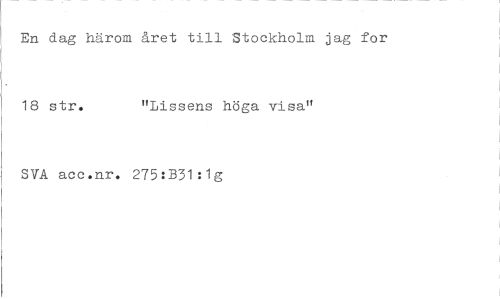 //// En dag härom året till Stockholm jag for 18 str. "Lissens höga visa" //// SVA acc.nr. 275:B31:1g ////