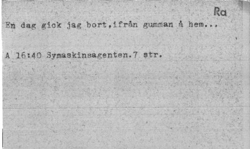 //// i . 3 //// Ro //// En dag gick jag bort,ifrån gumman å hem... A 16:40 .Symaskinsagenten. 7 str. ////