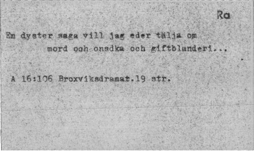 //// Ra ' //// Eu dyster s*£a vill tälja oss //// mord oah onadka och glftblartdéri.,. //// A 16:106 Broxviksdr&mat.19 str. ////