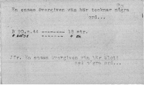 //// En ensam övergiver vän här tecknar nAgra //// ord,., * //// B 90«^»4.4 ---13 Htr, //// # ianss --- & SK. //// J"r. "En ensam ovfjrgi.vén vän här blott //// I rp£>;'i ' O T. i • • ////