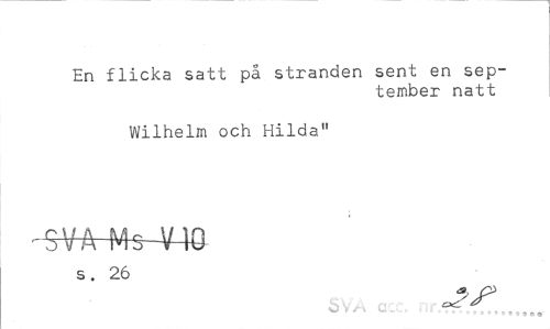 //// En flicka satt på stranden sent en september natt //// Wilhelm och Hilda" //// s. 26 //// o v.. . C ////