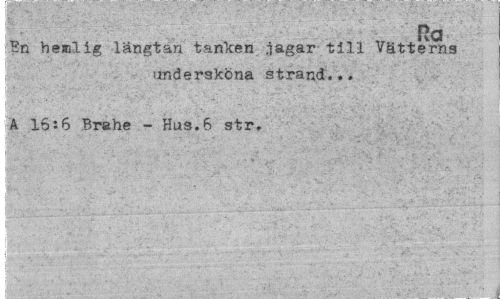 //// Ra //// ?n he*lig längtan tanken, jagar till Vätterns undersköna strand... //// A 16:6 Brahe - Hus.6 str. //// .. -. •,\ t" V" - ' \ ////