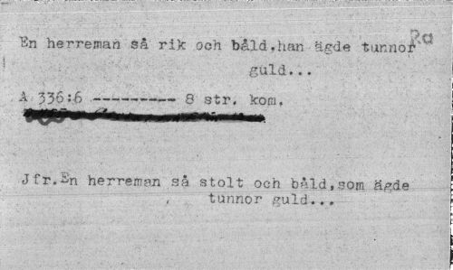//// ^ - .-T" r~|j| - « --v;|¦,„ . . • . - .. ""'vi • ' • ;.. //// En herreman så ri)c och båld.han ägde tunnor //// guld... //// A 336:6 ---— 8 str. kora. //// Hj*J T i»... " ' //// ¦ Jfr.Sn herreman så stolt och båld,som ägde //// tunnor guld... ////