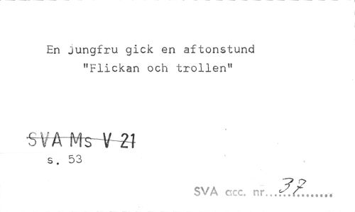 //// En jungfru gick en aftonstund "Flickan och trollen" //// SV/Hte-V-S //// s. 53 //// SVA ccc. nr. IL... ////