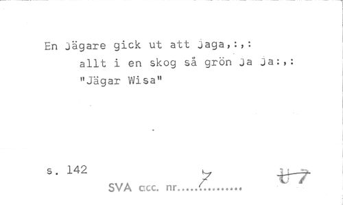 //// En jägare gick ut att jaga,:,: //// allt i en skog så grön Ja Ja:,: "Jägar Wisa" //// 5" 142 ¥ trr //// SVA ccc. nr...C... ////