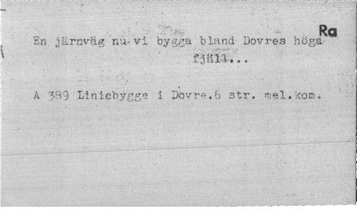 //// En järnväg nu-vi bygga bland Bov res hög??® v fjäll... //// A 339 liniebygge i Dövre.6 str. mel.kom i ////