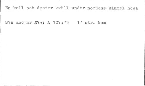 //// En kall och dyster kväll under nordens himmel höga SVA aec nr ST5 i A 107:73 17 str. kom ////