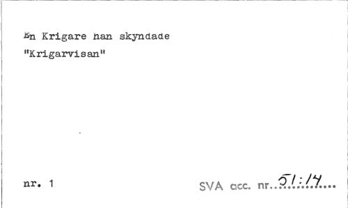 //// ^n Krigare nan skyndade "Krigarvisan" //// nr. 1 SVA acc. nr..?..(.'.tt... ////