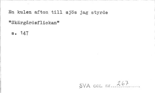 //// Sn kulen afton till sjös jag styrde "Skärgårdsflickan" //// s. 147 //// SVA ccc. nr ////