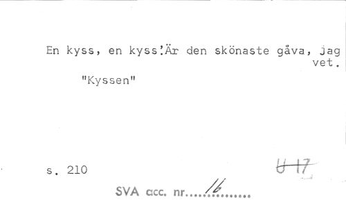 //// En kyss, en kyss!Är den skönaste gåva, jag //// vet. //// "Kyssen" s. 210 //// SVA ccc. nr., // ////