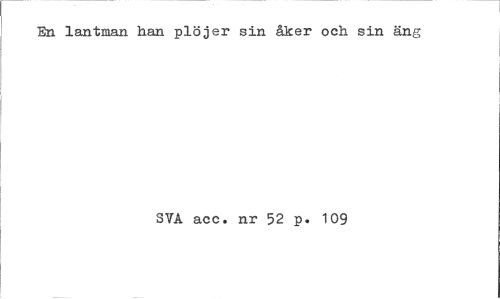 //// En lantman han plöjer sin åker och sin äng SVA acc. nr 52 p. 109 ////