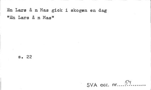 //// En Lars å n Mas gick i skogen en dag "En Lars å n Mas" //// s. 22 //// KH //// SVA ccc. nr—... ////