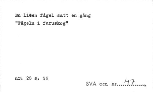 //// En liéen fågel satt en gång "Fågeln i furuskog" //// nr. 28 s. 56 , //// SVA acc. nr...d.f...%a, ////