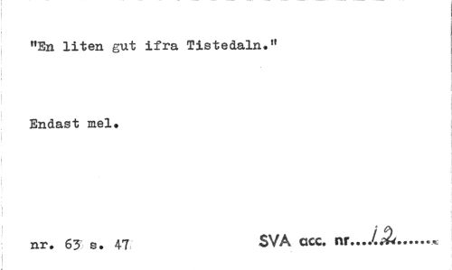 //// "En liten gut ifra Tistedaln." Endast mel. //// nr. 63 s. 47 SVA ccc. ...« ////